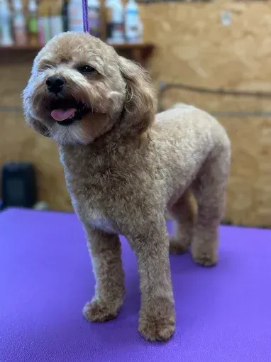 - Finishing touches: dog-safe cologne, bandana or bow (if requested)